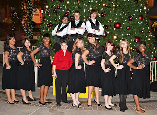 I'm working on a project right now...but I'll have to wait until after Christmas to show you all. In the meantime, here is a shot of the Copper Canyon H.S. Acapella Singers. They were caroling this evening, and did a wonderful job of it.
